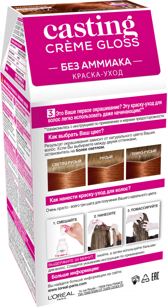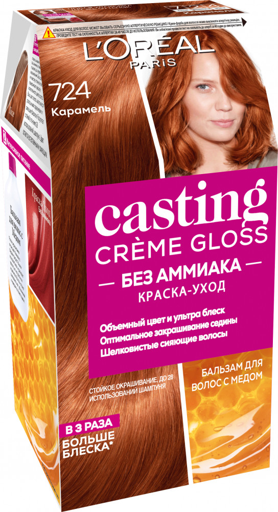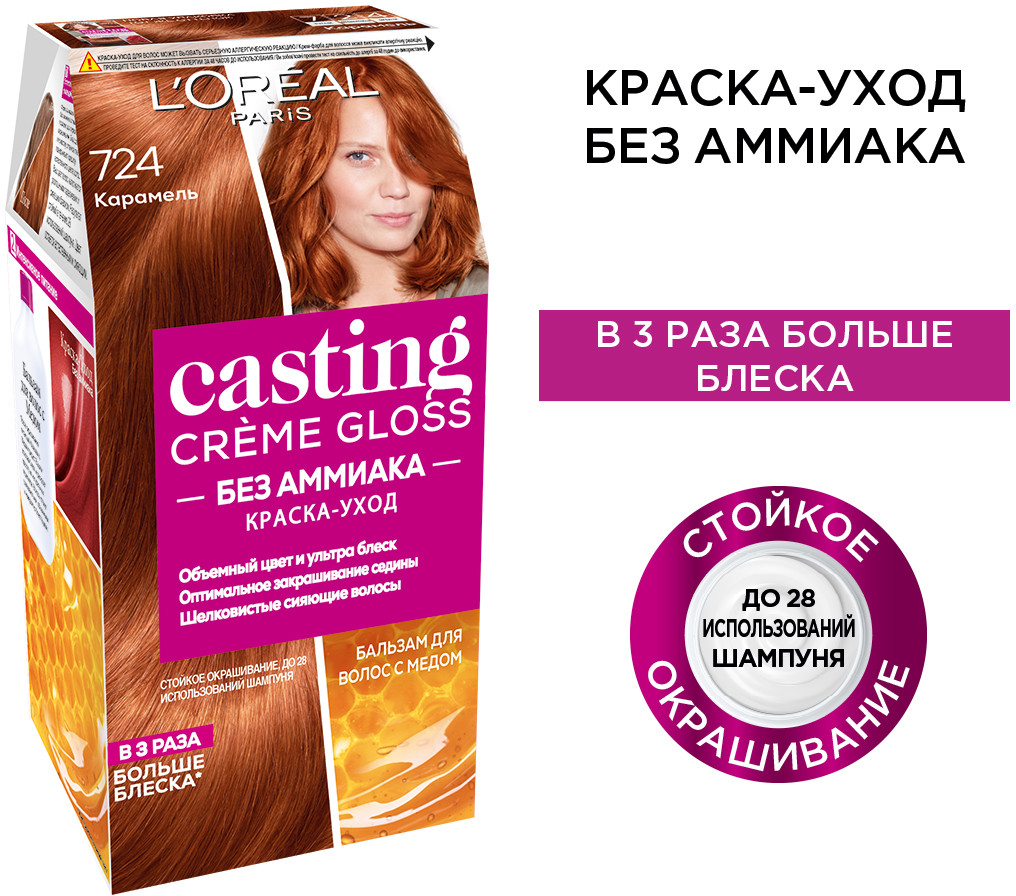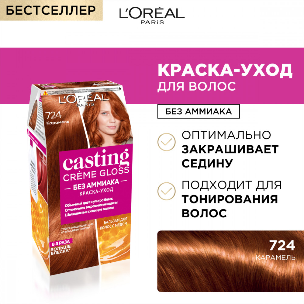 L'Oreal Paris Краска-уход для волос без аммиака, оттенок 724 Карамель