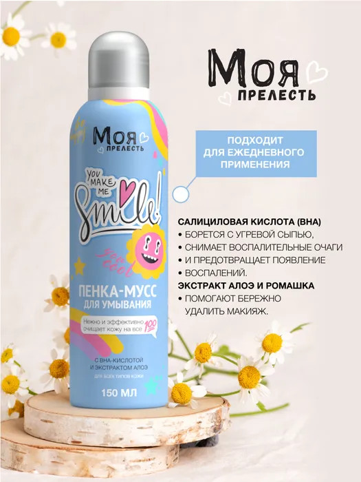 Моя Прелесть Пенка-мусс для умывания «You make me smile!»В данный момент этот товар отсутствует в продаже. Возможно, у нас найдется аналогичный или похожий товар здесь. Пенка - мусс для умывания без консервантов в аэрозольном баллоне помогает справиться с акне и уменьшить черные точки, увлажняет и снимает раздражение кожи. В составе пенки ацетилсалициловая кислота, которая помогает снять покраснения и восстановить проблемную кожу. Чистая и красивая кожа в подростковом возрасте - реальность, если использовать пенку для умывания каждый день. |