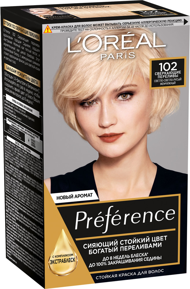 L'Oreal Paris Краска для волос «Preference», оттенок 102 Сверкающие переливы светло-светло русый жемчужный
