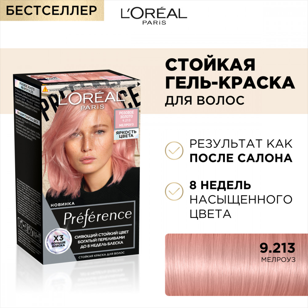 L'Oreal Paris Краска для волос «Preference Яркий цвет», оттенок 9.213 Мелроуз розовое золото