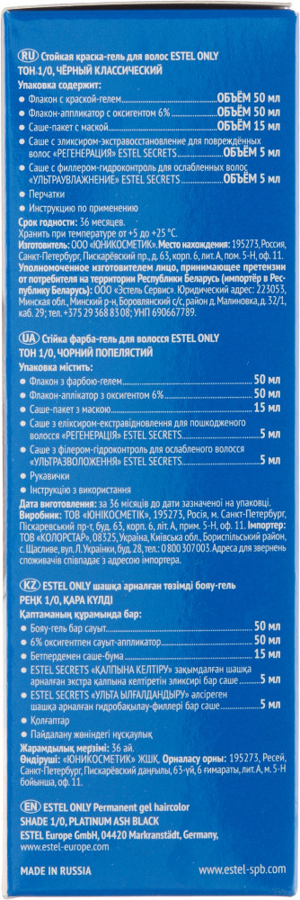 Estel Краска-гель для волос, оттенок 1/0 Черный классический