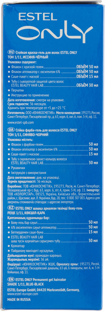 Estel Краска-гель для волос, оттенок 1/11 Иссиня-черный