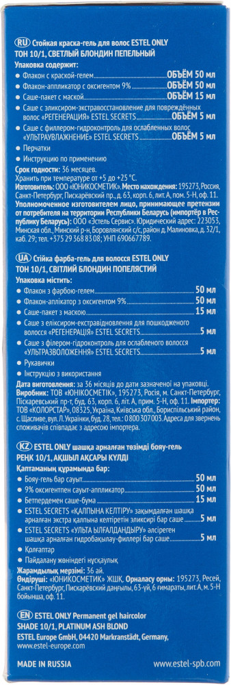 Estel Краска-гель для волос, оттенок 10/1 Светлый блондин пепельный