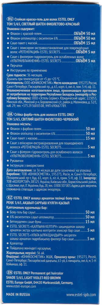 Estel Краска-гель для волос, оттенок 5/65 Светлый шатен фиолетово-красный
