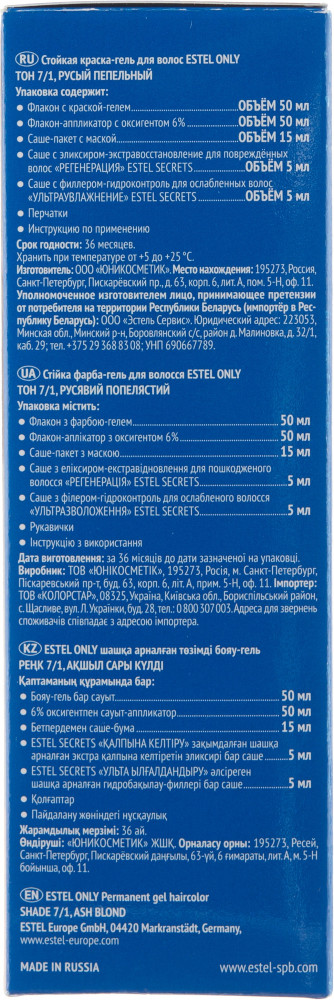Estel Краска-гель для волос, оттенок 7/1 Русый пепельный