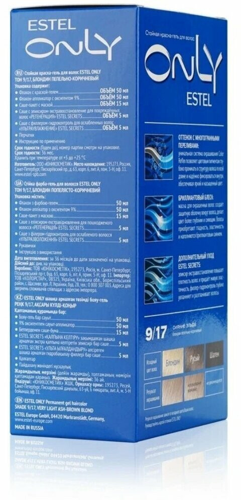 Оттенок: 9/17 Блондин пепельно-коричневый