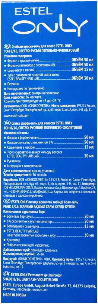 Estel Краска-гель для волос, оттенок 8/16 Светло-русый пепельно-фиолетовый