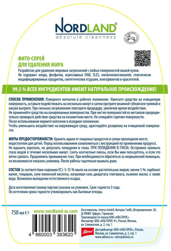 Nordland Фито-спрей для удаления жираВ данный момент этот товар отсутствует в продаже. Возможно, у нас найдется аналогичный или похожий товар здесь. 99,9 % всех ингредиентов имеют натуральное происхождение! |