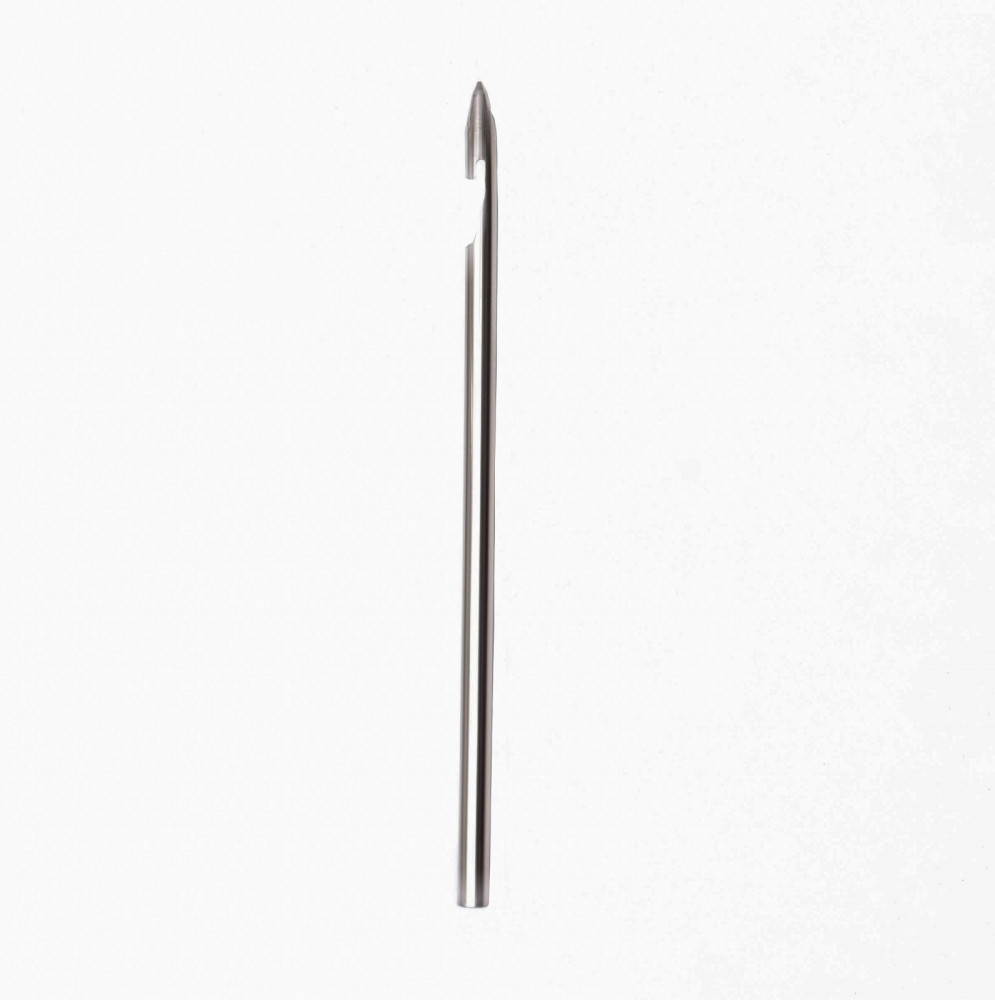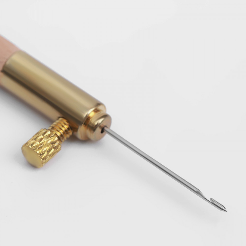 Игла для люневильского крючка изготовлена из прочного металла, не имеет зазубрин. Высокая острота заточки позволяет быстро захватывать нить и не цеплять ткань. Чтобы сменить иглу — необходимо открутить фиксированный винт на корпусе крючка.
