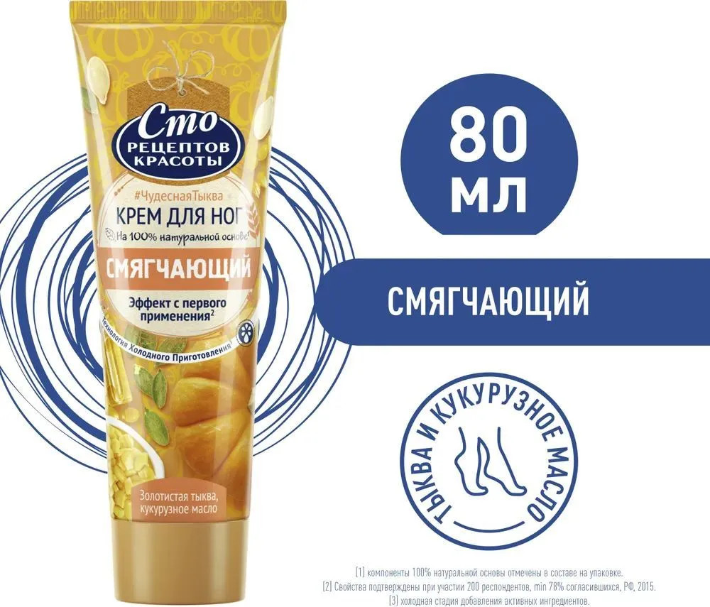 Сто рецептов красоты Крем для ног смягчающий с тыквой и кукурузой