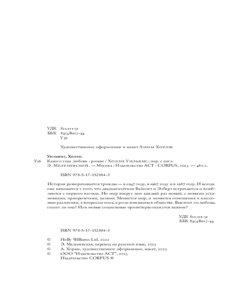 💳 Оплатить за товар можно при получении 🇰🇿 Есть бесплатная доставка по Казахстану 🎁 Копите бонусы с каждой покупки Серия: roman История разворачивается трижды — в 1947 году, в 1967 году и в 1987 году. И всегда она начинается с того, что двадцатилетние Вайолет и Элберт встречаются и влюбляются с первого взгляда. Но мир вокруг них каждый раз новый, с новыми установками, приоритетами, целями. Меняется мир, и меняется отношение к классовым различиям, к вопросам пола, к роли женщины в обществе. Выстоит ли любовь, спасет ли она? Или новые социальные ориентиры окажутся важнее? |