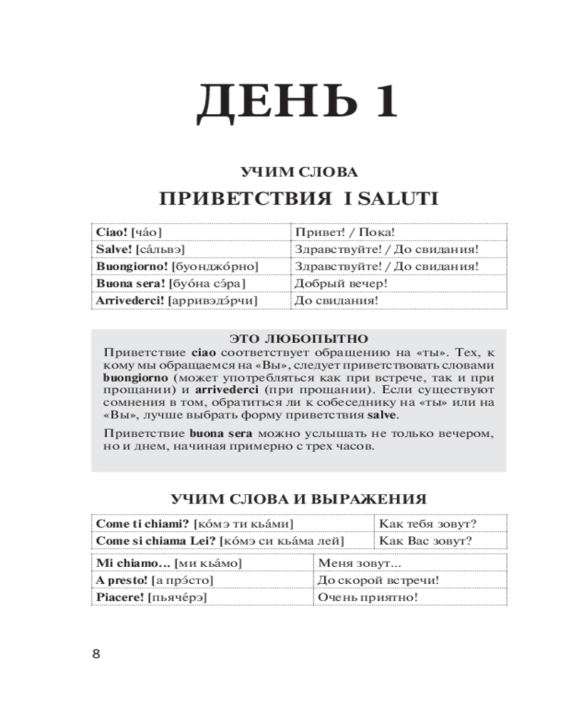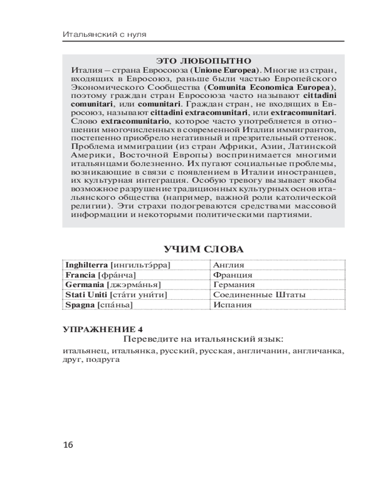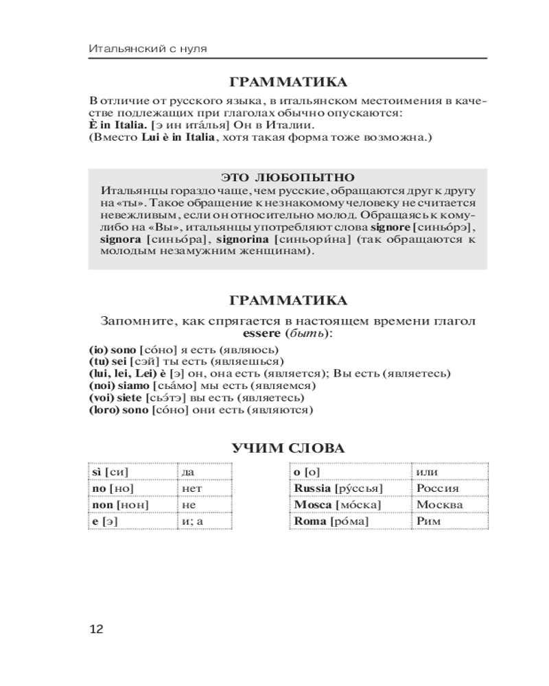 Итальянский с нуляВ данный момент этот товар отсутствует в продаже. Возможно, у нас найдется аналогичный или похожий товар здесь. Серия: Иностранный с нуля Пособие содержит лексический и грамматический материал для изучения итальянского языка с нулевого уровня. Издание охватывает лексику по 12 важнейшим бытовым темам. В каждом разделе приводится базовый вокабуляр, который будет полезен в самых разных ситуациях. Также пособие содержит упражнения с ключами, русско-итальянский и итальянско-русский словари. Книга будет полезна всем, кто начинает изучать итальянский язык. Подходит как для самостоятельных занятий, так и для работы с преподавателем. |