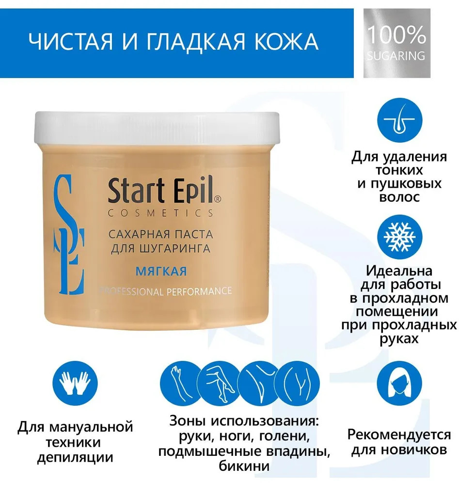 Сахарная паста для шугаринга предназначена для мануальной техники депиляции. Мягкая консистенция сахарной пасты отлично подходит для использования в прохладных и хорошо проветриваемых помещениях. Она понравиться мастерам с прохладными руками. Сахарная паста не травмирует живые клетки кожи, деликатно удаляя волосы длиной 2-5 мм. Волосы становятся более тонкими и ослабленными. При регулярном проведении процедуры депиляции волосы становятся более тонкими, их становится меньше. Процедура со временем становится менее болезненной.