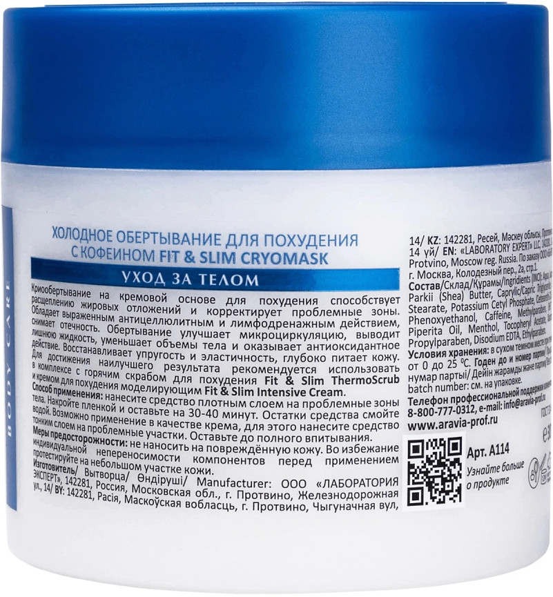 Aravia Обертывание для похудения холодное с кофеином «Fit and Slim Cryomask»