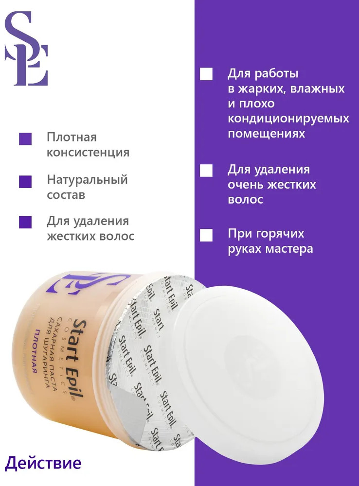 Сахарная паста для шугаринга предназначена для мануальной техники депиляции. Также ее можно добавлять для смешивания с другими сахарными пастами с целью достижения требуемой консистенции с учётом условий окружающей среды, температуры рук мастера, типа кожи и жесткости волос у клиента. Сахарная паста не травмирует живые клетки кожи, деликатно удаляя волосы длиной 2-5 мм. Волосы становятся более тонкими и ослабленными.