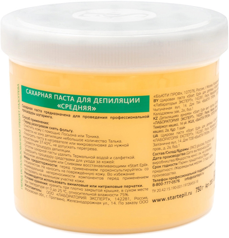 Сахарная паста для шугаринга предназначена для мануальной техники депиляции, рабочая температура составляет 37-40°C. Сахарная паста средней консистенции отлично подойдет для работы в теплом помещении при прохладных руках мастера и, если вы работаете в прохладном помещении при теплых руках. Идеально подходит для удаления волос средней жесткости.