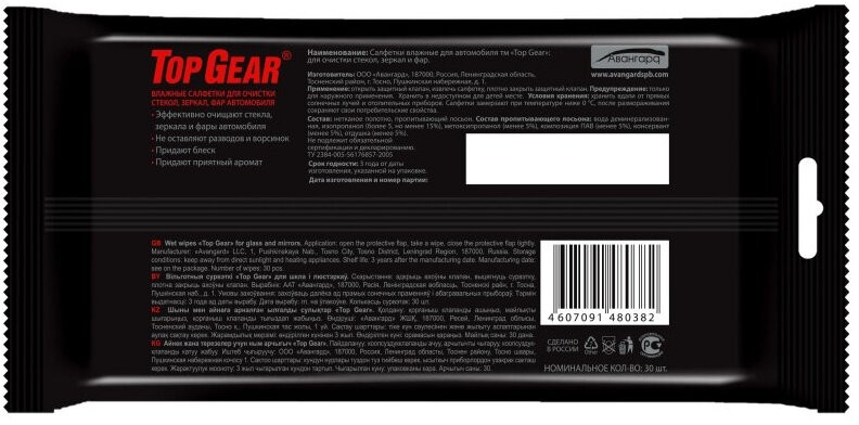 Продукция бренда Top Gear на сегодняшний день является лидером продаж в сегменте влажных автомобильных салфеток на территории России и стран СНГ. В ассортименте бренда есть всё, что понадобится настоящему автолюбителю — влажные салфетки различных назначений, сухие полотенца, перчатки.