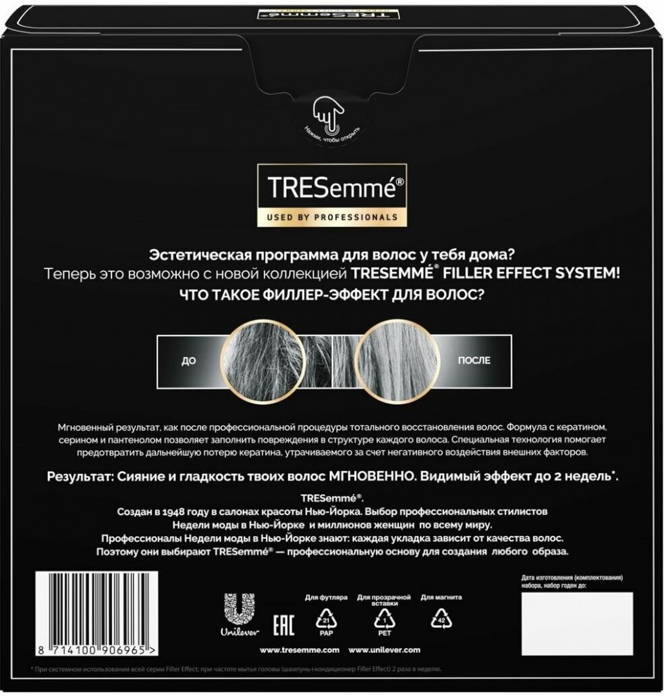 Крем-уход: aqua, cyclopentasiloxane, amodimethicone, caprylic/ capric triglyceride, cetyl alcohol, stearamidopropyl dimethylamine, aspartic acid, dimethicone, glycerin, hydrolyzed keratin, lecithin, mineral oil, panthenol, serine, acrylamidopropyltrimonium chloride, c11-13 isoparaffin, caprylyl glycol, cetearyl alcohol, citric acid, cyclohexsasiloxane, disodium edta, distearoylethyl dimonium chloride, parfum, iodopropynyl butylcarbamate, peg-15 hydroxystearate, peg-4, peg-4 dilaurate, peg-4 laurate, phenoxyethanol, polyquaternium crosspolymer-3, polyquaternium-28, pvm/ma copolymer, sodium hydroxide, sorbitan oleate, trideceth-6, benzyl salicylate, coumarin, hexyl cinnamal, limonene, linalool.