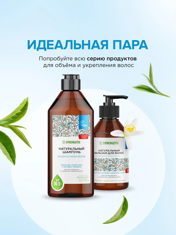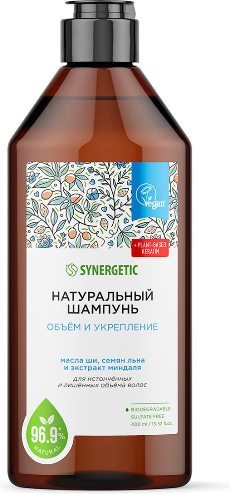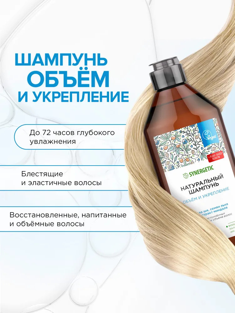 Synergetic Шампунь бессульфатный натуральный «Объём и укрепление волос»