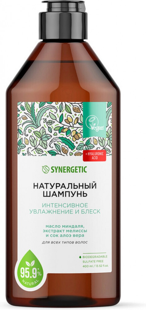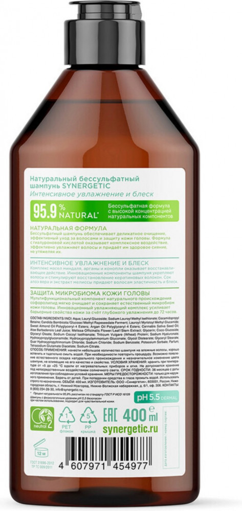 Synergetic Шампунь для волос бессульфатный «Интенсивное увлажнение и блеск»