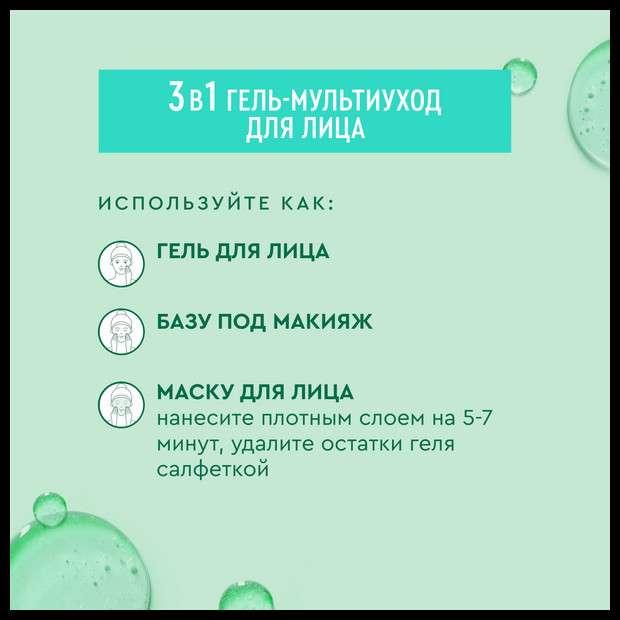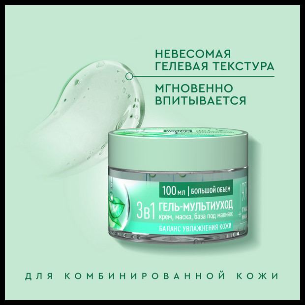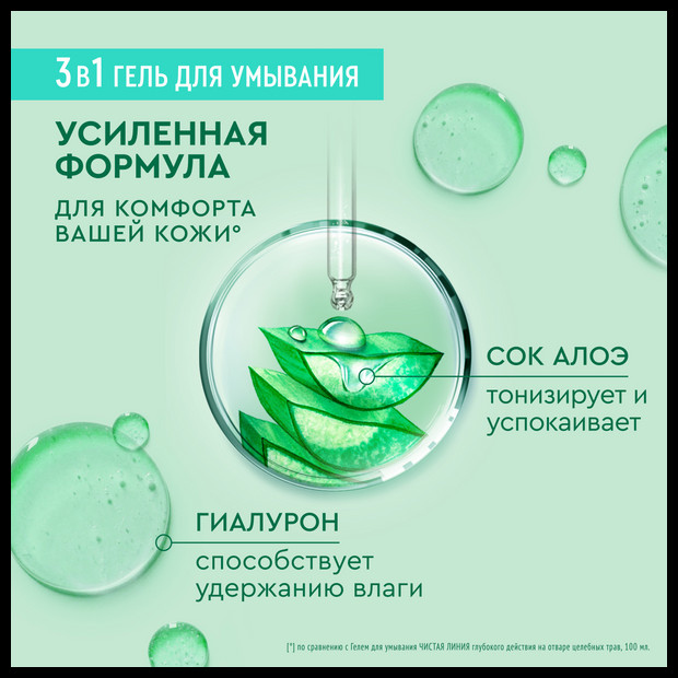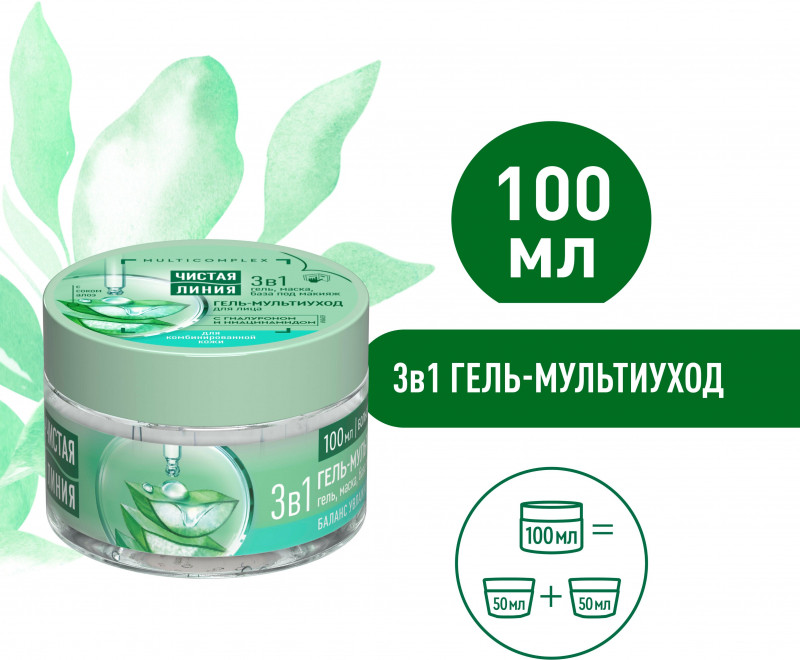 Чистая линия Гель-мультиуход для лица с соком алоэ, гиалуроном и нициамидом