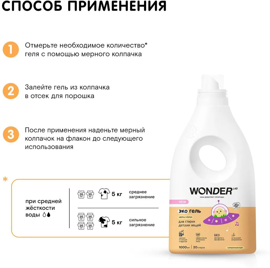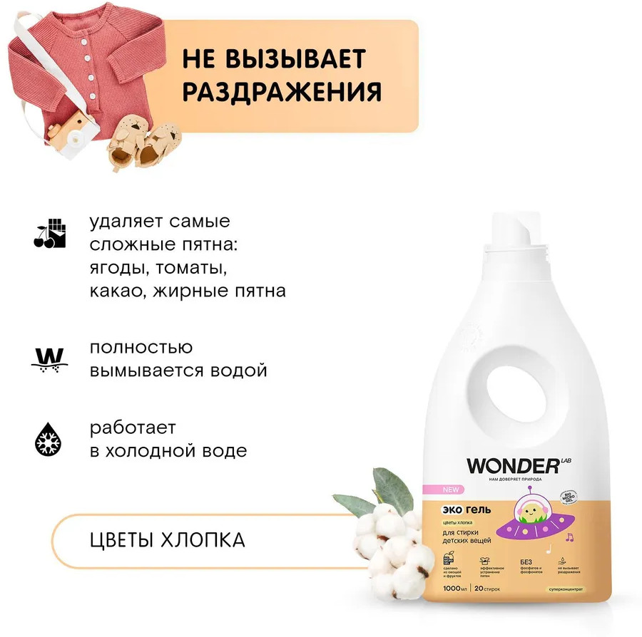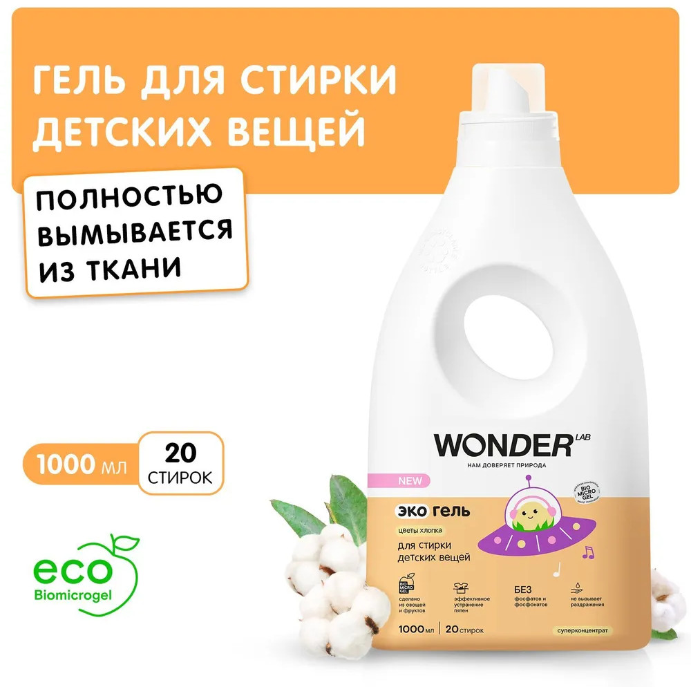 Wonder Lab Гель для стирки детского белья «Цветы хлопка»