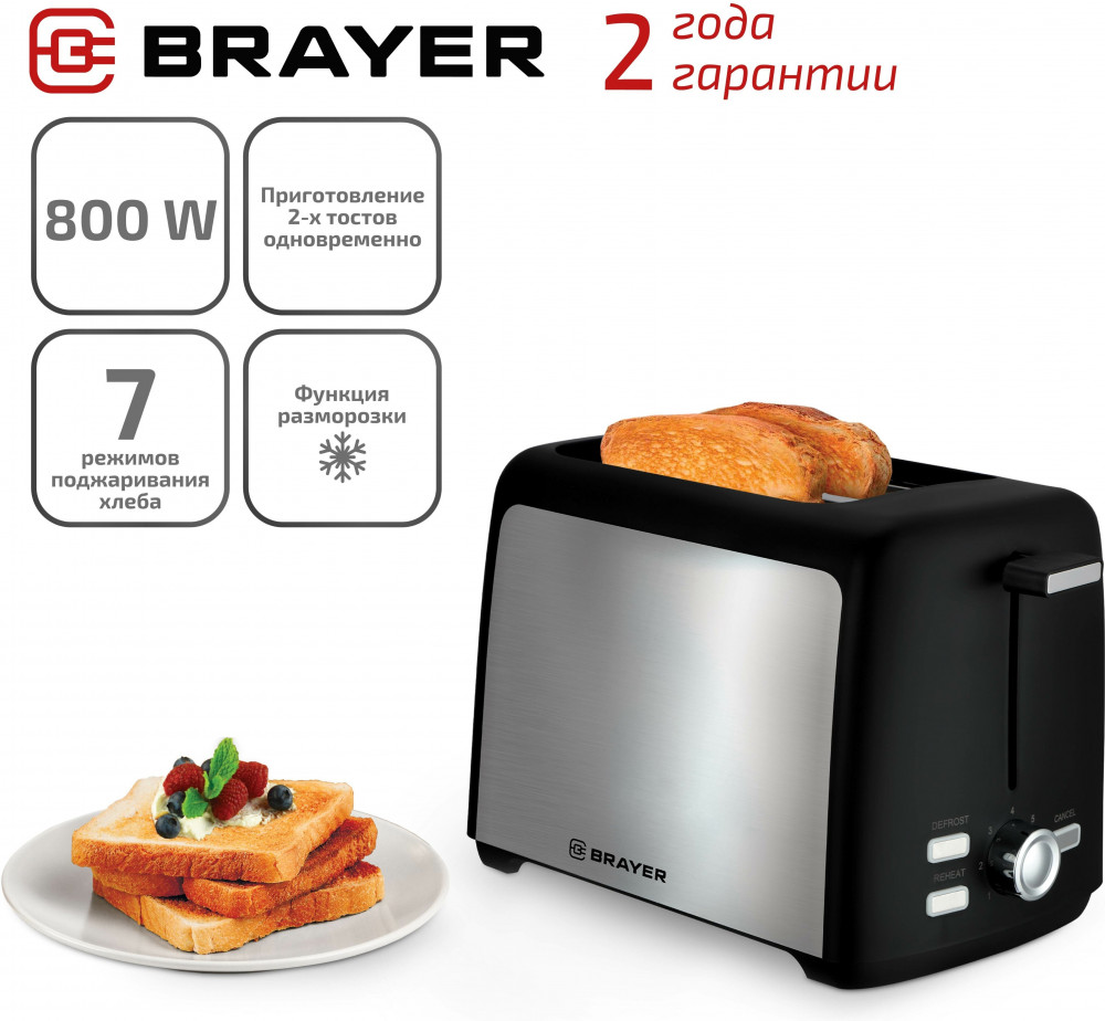 Brayer Тостер BR2109-30% +487 быстро готовит легкий не маркий удобные функции красивый