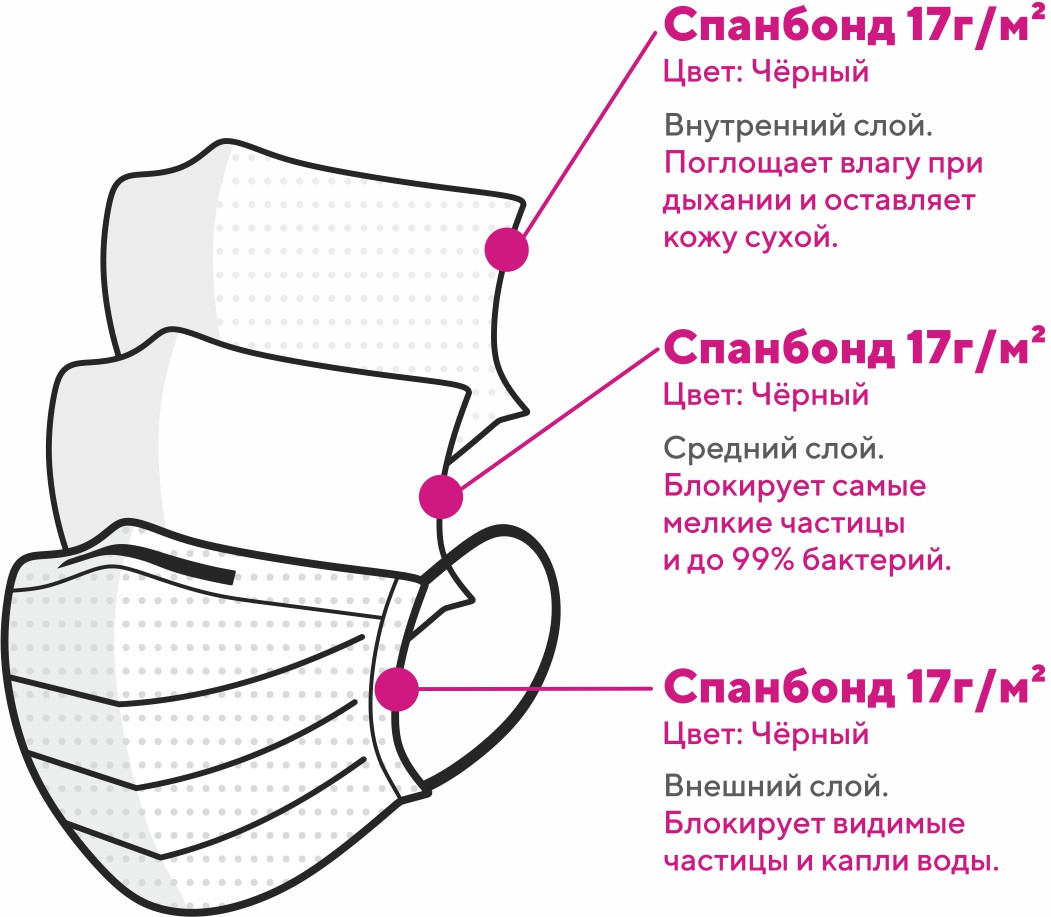 Три защитных слоя у маски, цвет черный, но это не проблематично, приобрела на запас. Условия заставляют не пренебрегать личной защитой. Рекомендую. Спасибо Flip!!!
