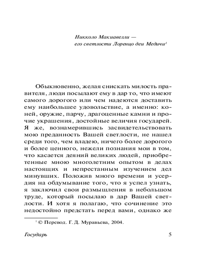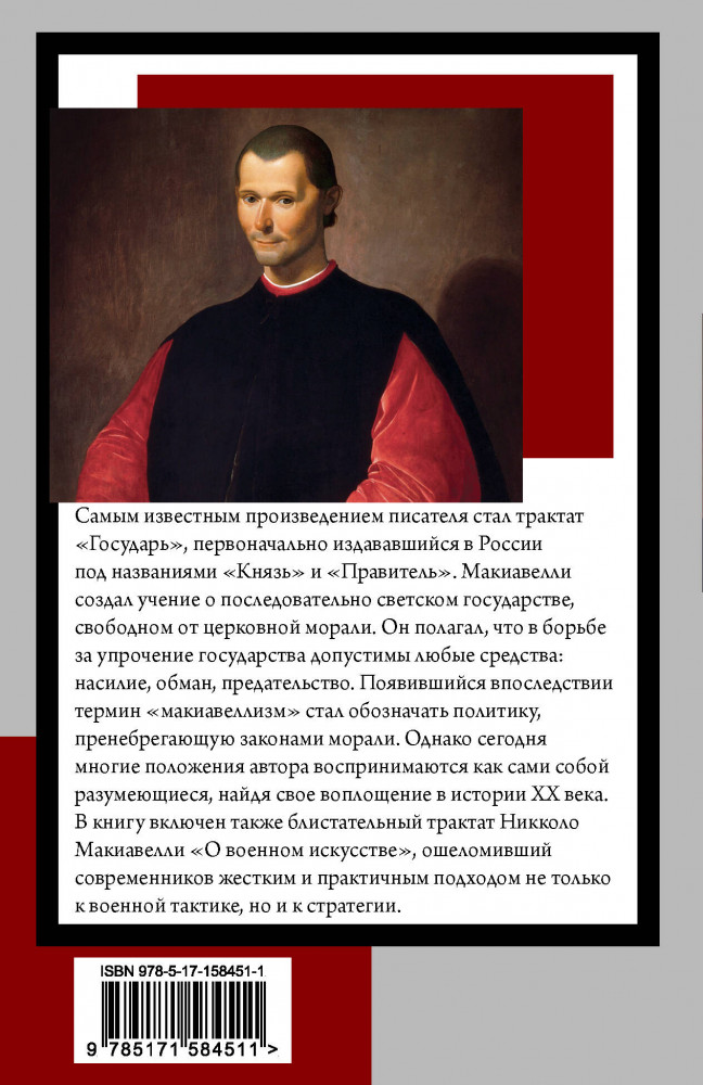 В данный момент этот товар отсутствует в продаже. Возможно, у нас найдется аналогичный или похожий товар здесь. Серия: Книга на все времена (нов/м) Самым известным произведением писателя стал трактат «Государь», первоначально издававшийся в России под названиями «Князь» и «Правитель». Макиавелли создал учение о последовательно светском государстве, свободном от церковной морали. Он полагал, что в борьбе за упрочение государства допустимы любые средства: насилие, обман, предательство. Появившийся впоследствии термин «макиавеллизм» стал обозначать политику, пренебрегающую законами морали. Однако сегодня многие положения автора воспринимаются как сами собой разумеющиеся, найдя свое воплощение в истории XX века.