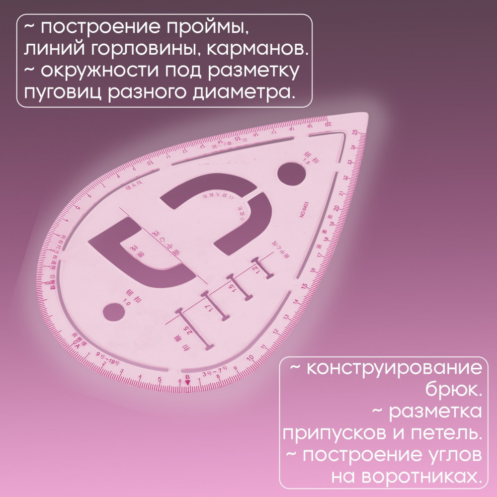 Арт Узор Лекало портновское метрическое премиум «Капля»В данный момент этот товар отсутствует в продаже. Возможно, у нас найдется аналогичный или похожий товар здесь. Серия: Basic Лекало «Капля» идеально подойдёт для конструирования брюк, построения углов на воротнике, разметке припусков и петель. Круглая сторона станет отличным помощником для построения линий горловины, проймы, карманов, окружности под разметку пуговиц разного размера. |