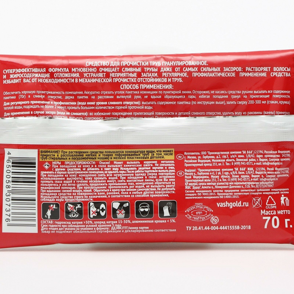 Vash Gold Средство для прочистки труб «Super гранулы»-20% +6 прочищает засоры моментально действует шипит эффективное рекомендую неприятный запах