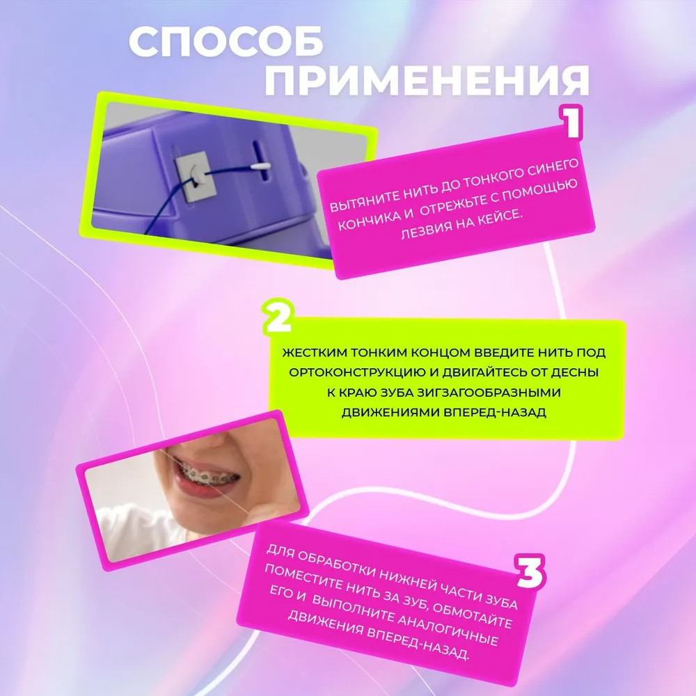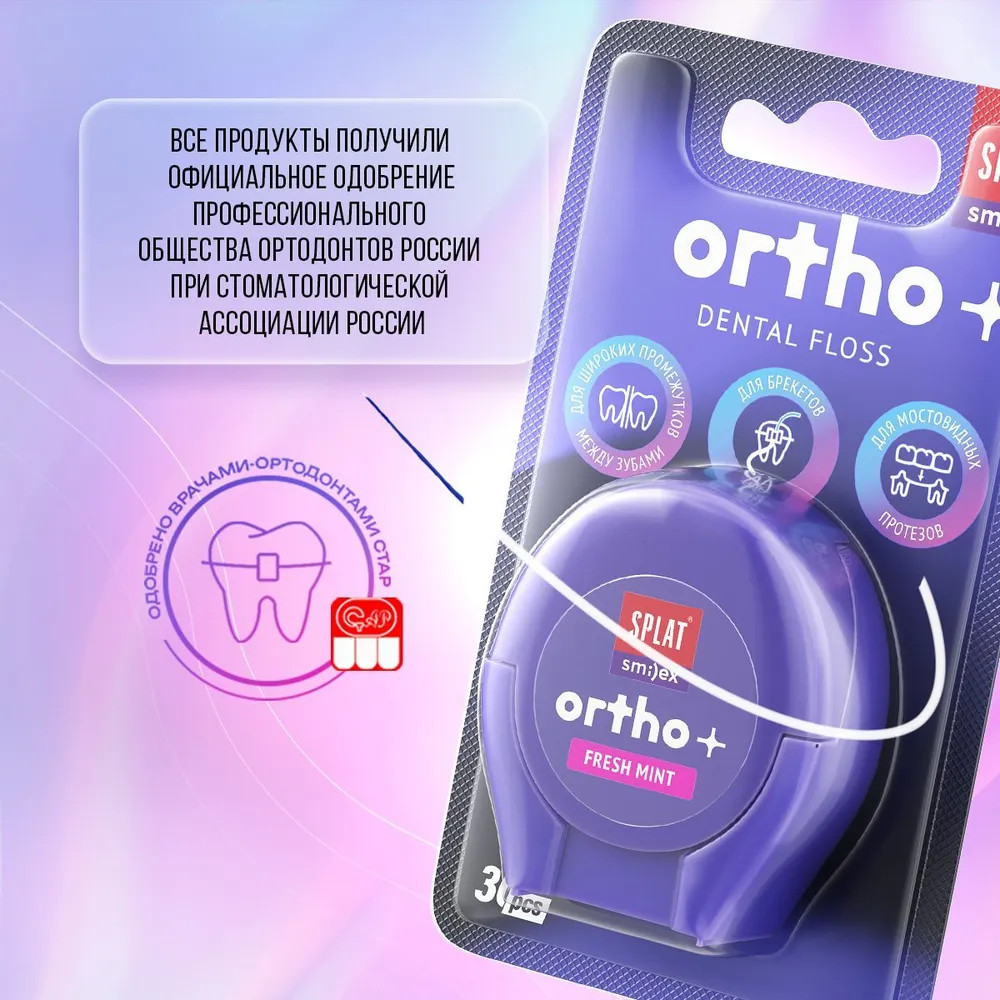 💳 Оплатить за товар можно при получении 🇰🇿 Есть бесплатная доставка по Казахстану 🎁 Копите бонусы с каждой покупки Серия: Smilex Объемная ортодонтическая зубная нить Splat Smilex Ortho+ со вкусом мяты очищает межзубные промежутки от налета и остатков пищи, а мягкая структура нити не травмирует десны. Цветной жесткий кончик нити легко входит под дугу брекетов и других ортоконструкций. Благодаря инновационной запатентованной технологии Riser Floss, нить Splat Smilex Ortho+ распушается во время использования, собирая на себе весь налет. Аромат мяты бодрит и освежает.А приятный и яркий кейс станет отличным аксессуаром ежедневной рутины.Клинически доказано: регулярное использование зубной нити сокращает образование налета на 69 %, а кровоточивость десен снижается на 50 %. |