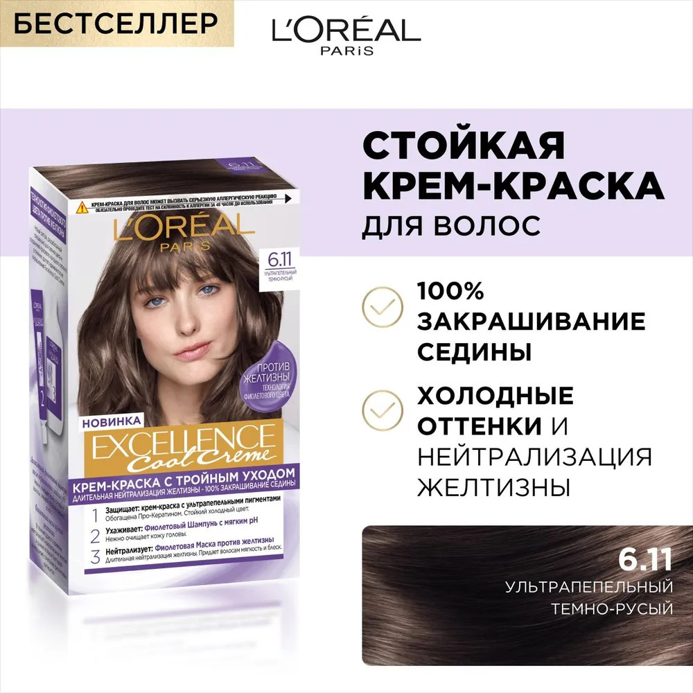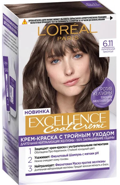L'Oreal Paris Крем-краска для волос стойкая, оттенок 6.11 Темный русый