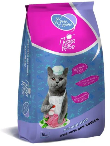 За корма Родины Корм для кошек с курицей и говядиной «Мясной пир»