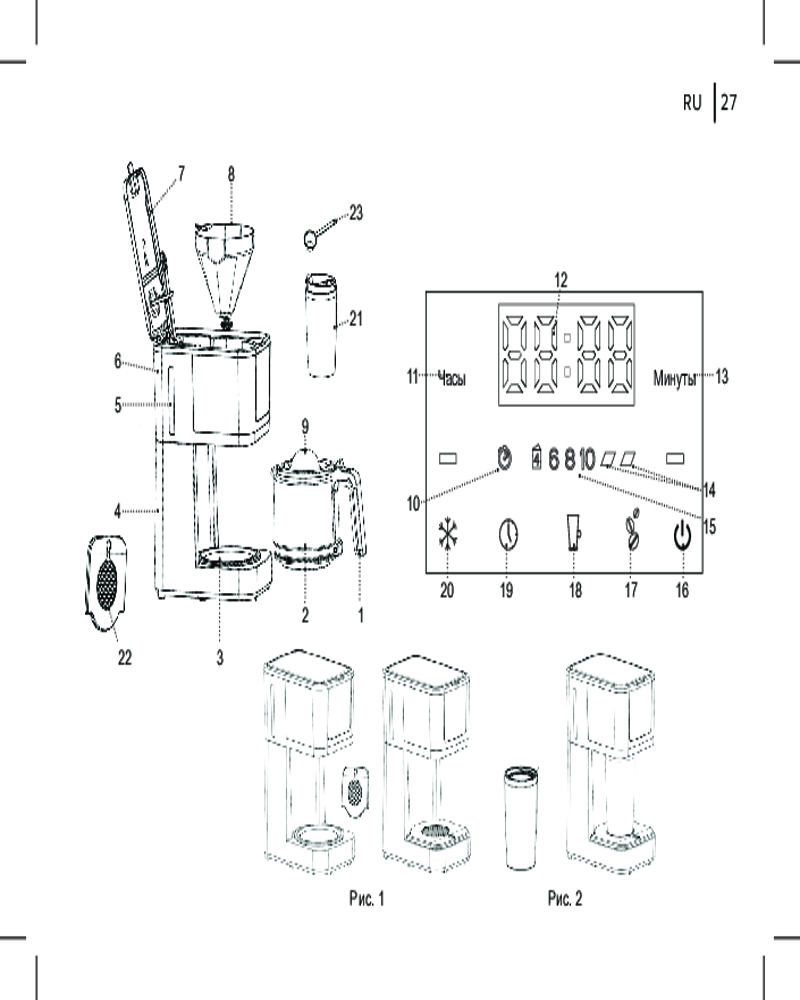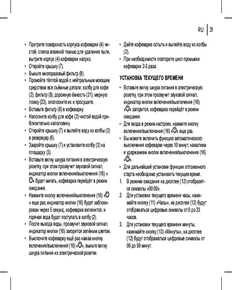 LED дисплей, автоотключение, индикатор уровня воды, нескользящая подставка, поддержка температуры, противокапельная система, световой индикатор работы, таймер
