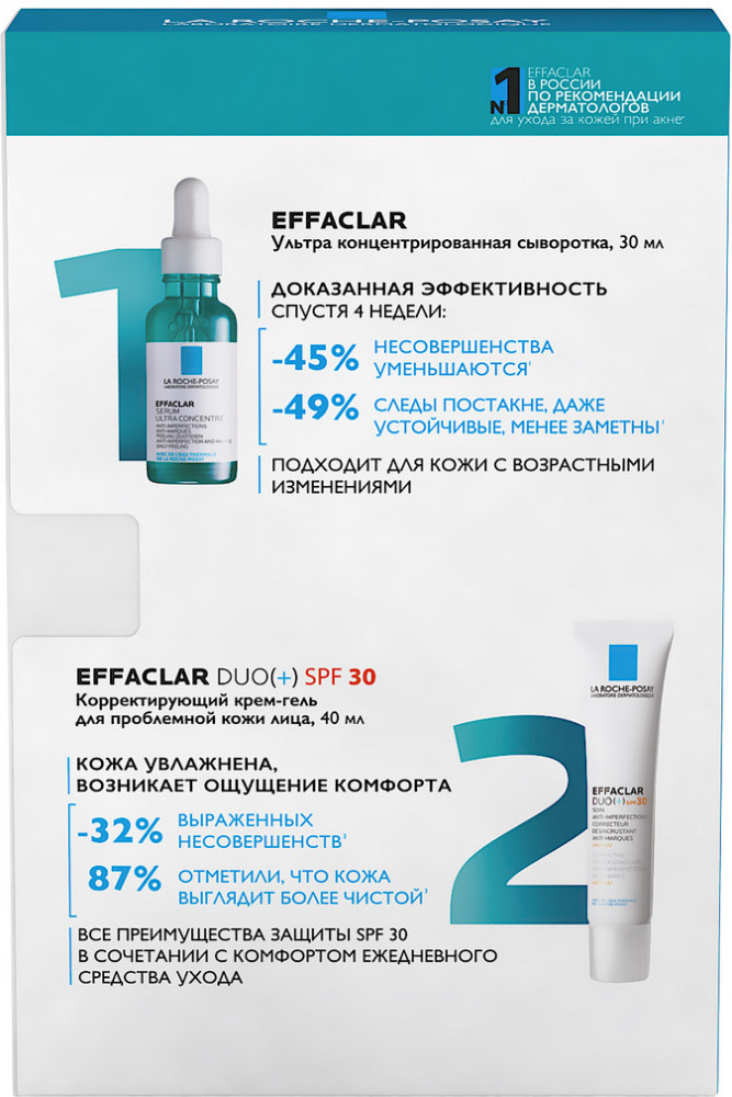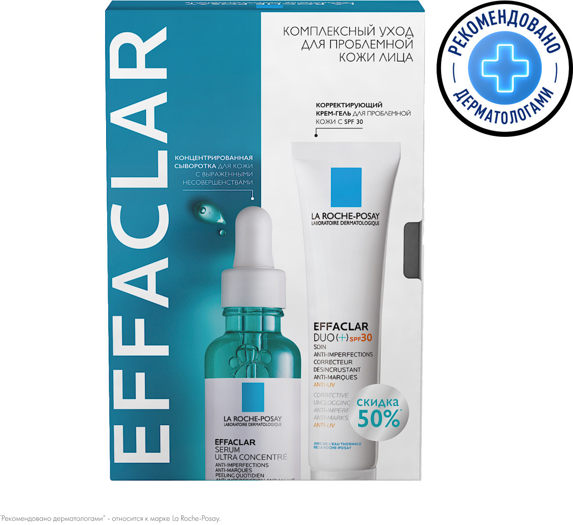 La Roche-Posay Набор Effaclar сыворотка, 40 мл + крем-гель DUO(+) SPF 30 со скидкой 50%В данный момент этот товар отсутствует в продаже. Возможно, у нас найдется аналогичный или похожий товар здесь. В набор входят: |