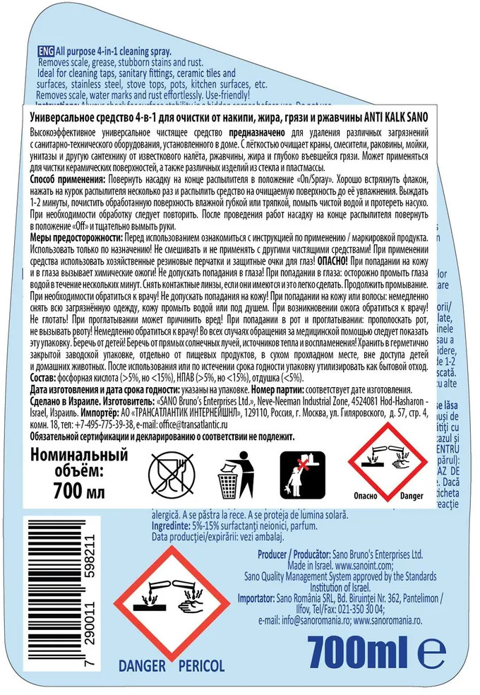 Отзывы «Средство для удаления известкового налета «AntiKalk 4-in1»»