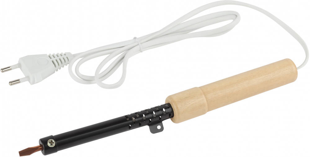 Паяльник при первом использовании показал все свои недостатки. Во-первых, на окрашенной металлической поверхности вспузырилась и облезла краска. Во-вторых, металлическая трубка плохо держится в деревянной ручке, шатается и может выпасть. Даже одноразовая вещь должна хотя бы один раз нормально работать, чего об этом паяльнике не скажешь.