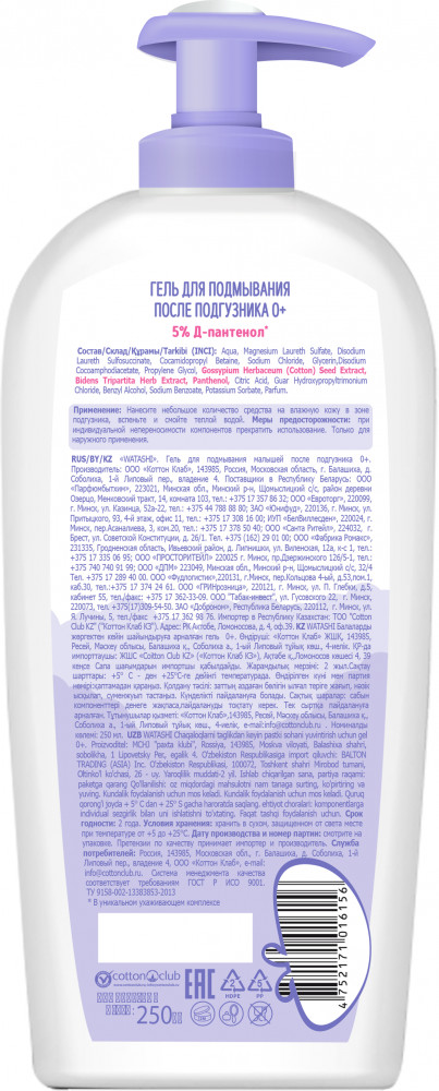 Watashi Гель для подмывания малышей после подгузника-20% +20