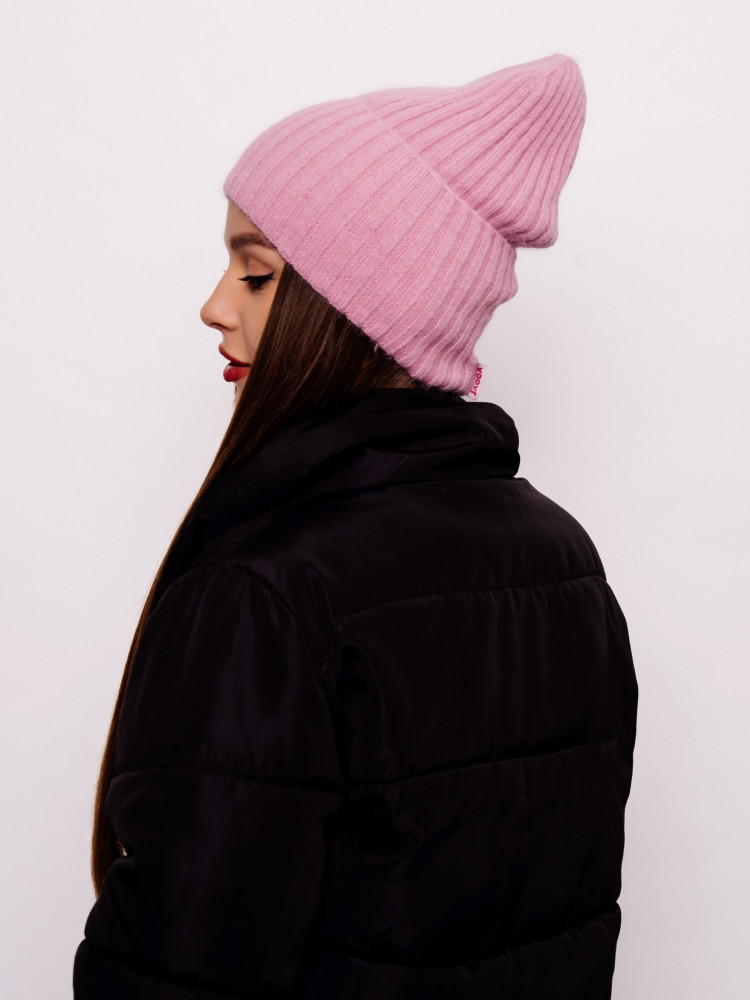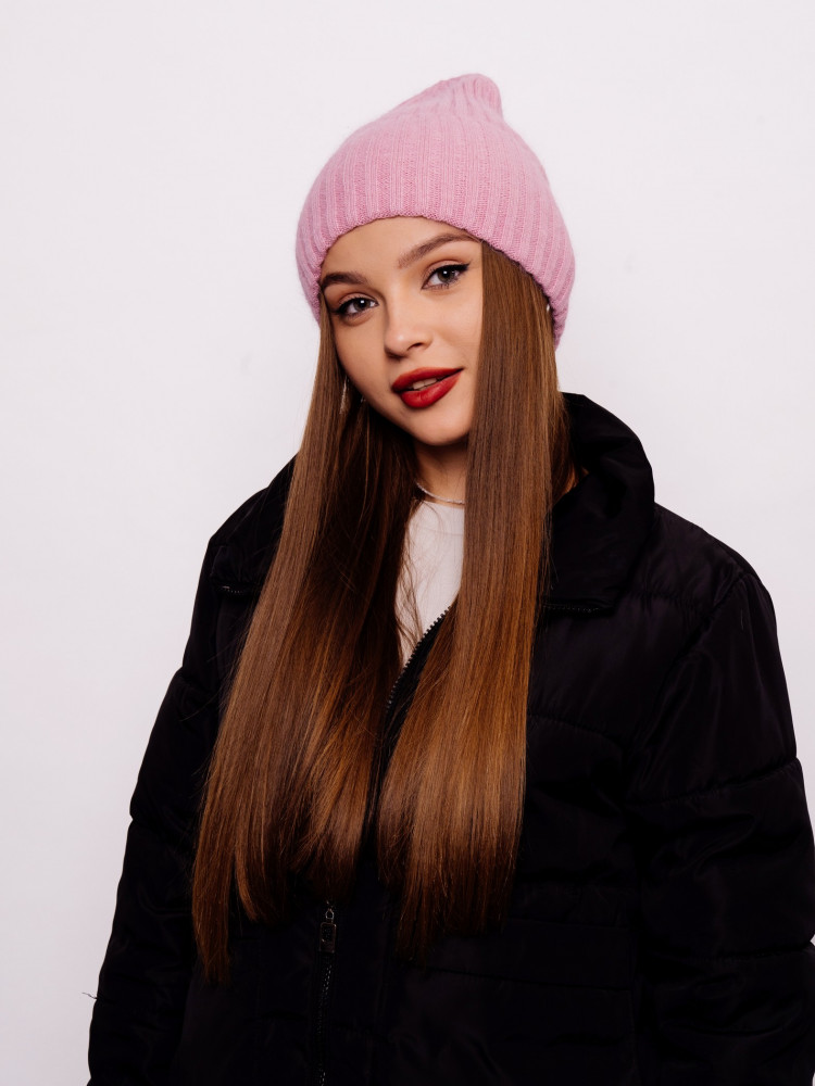 Шапка персикового цвета, очень мягкая и пушистая - на осень самая подходящая.