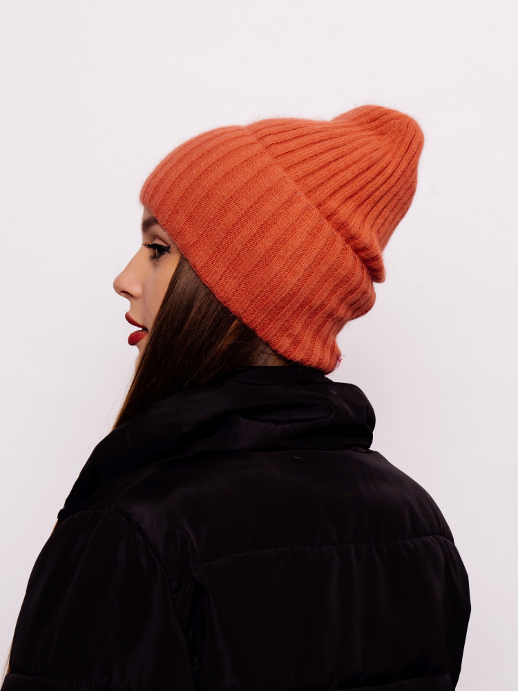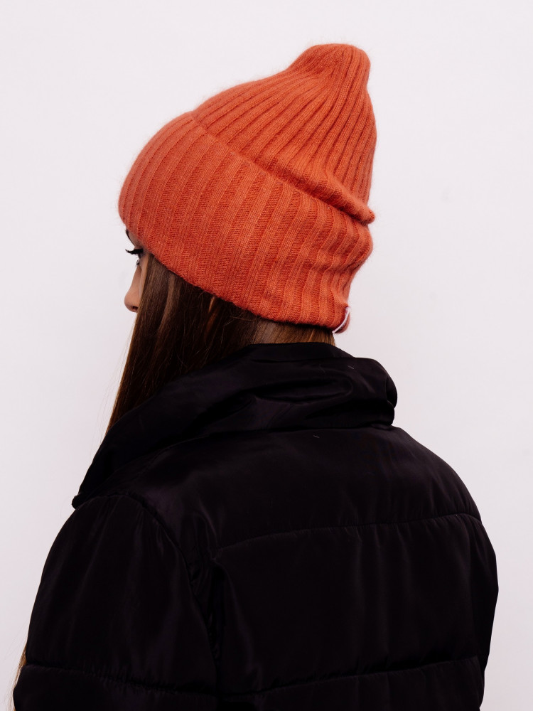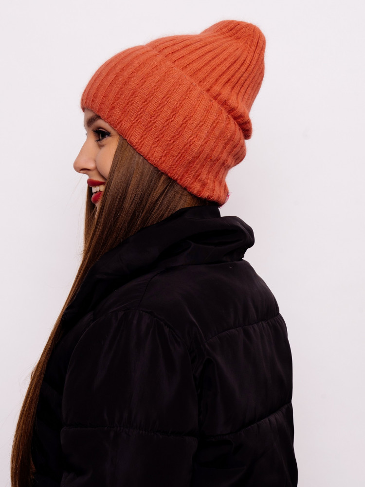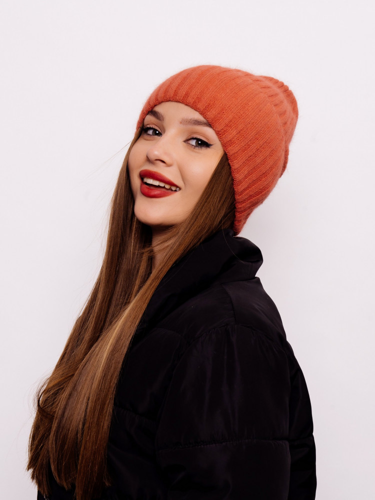 Шапка персикового цвета, очень мягкая и пушистая - на осень самая подходящая.