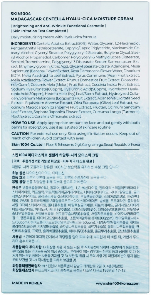 Skin1004 Крем для лица увлажняющий с центеллой «Hyalu-Cica Moisture Cream»