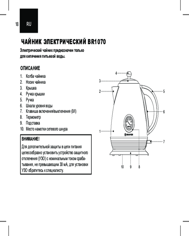 Чайник BR1070 также имеет функцию автоматического отключения, которая предотвращает перегрев и повреждение прибора. Это очень удобно, особенно если у вас есть маленькие дети или пожилые люди в доме.