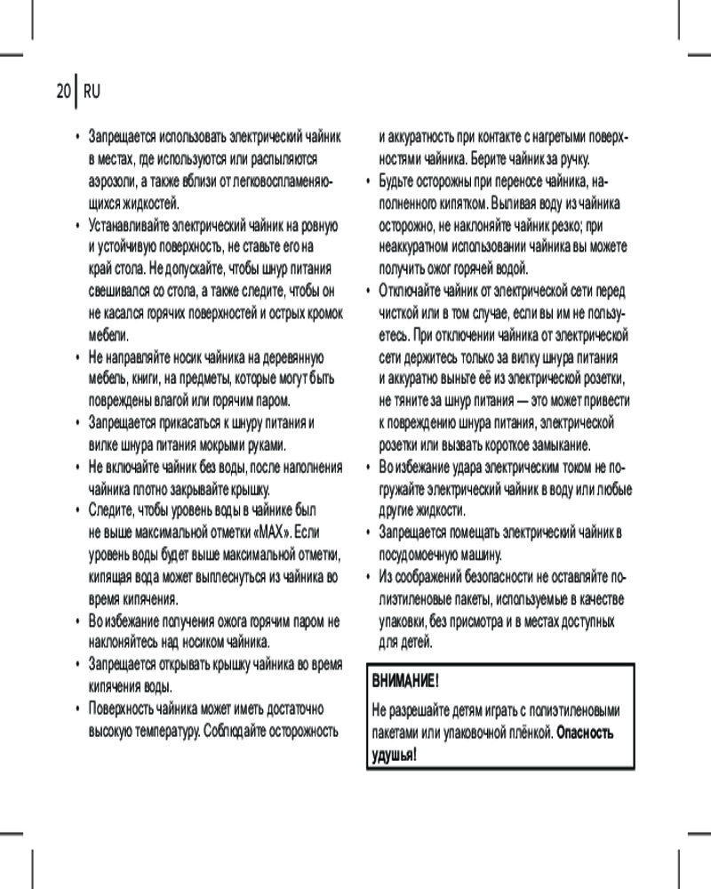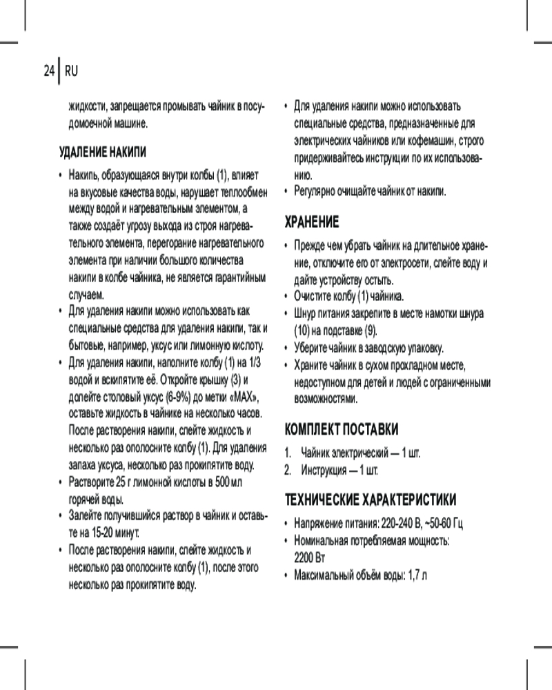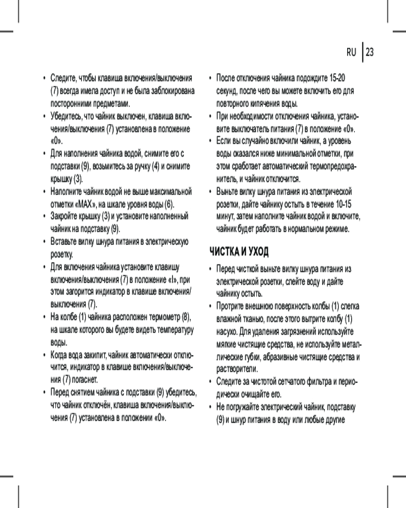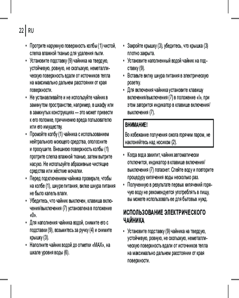 • автоотключение при закипании воды;