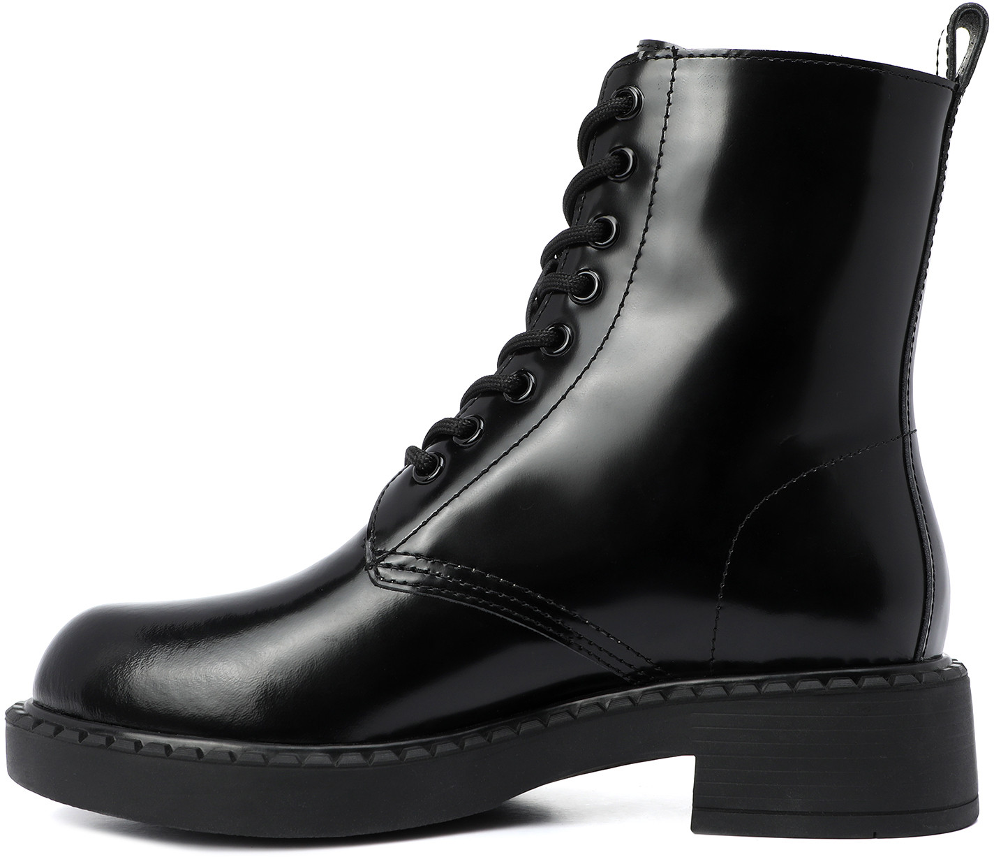 Стильные ботинки превосходно подойдут под любой образ и станут неповторимым завершением Вашего стиля. Верх модели выполнен из натуральной кожи теленка — прочного и эластичного материала, который быстро садится по ноге и мягко облегает стопу, он пропускает воздух и одновременно защищает от ветра и холода. Шнурки делают посадку максимально комфортной. В обуви будет комфортно с первого дня. Подкладка и стелька из натуральной кожи безопасны для стопы и препятствуют появлению мозолей. Материал позволит ногам дышать и меньше потеть. Подошва толщиной 2 см сделана из резины, прочная и устойчивая к стиранию. Небольшой каблук обеспечит поддержку мышцам вашей стопы. Каблук высотой 4 см, высота обуви — 16 см. Объем голенища — 24 см. Способ соединения подошвы — клеевой.