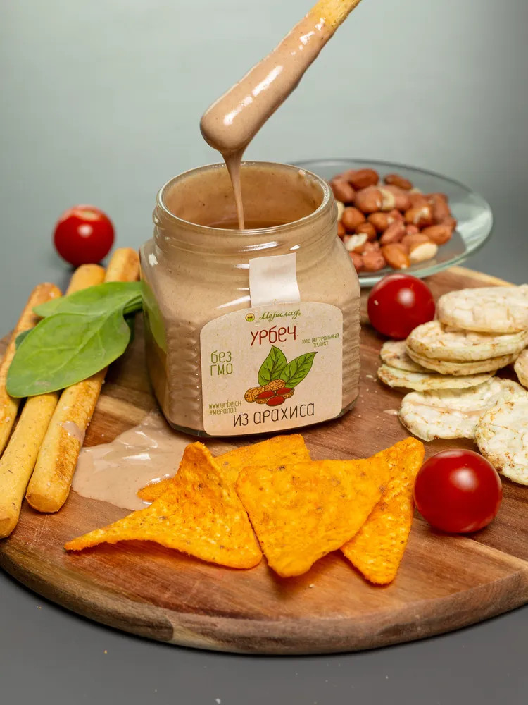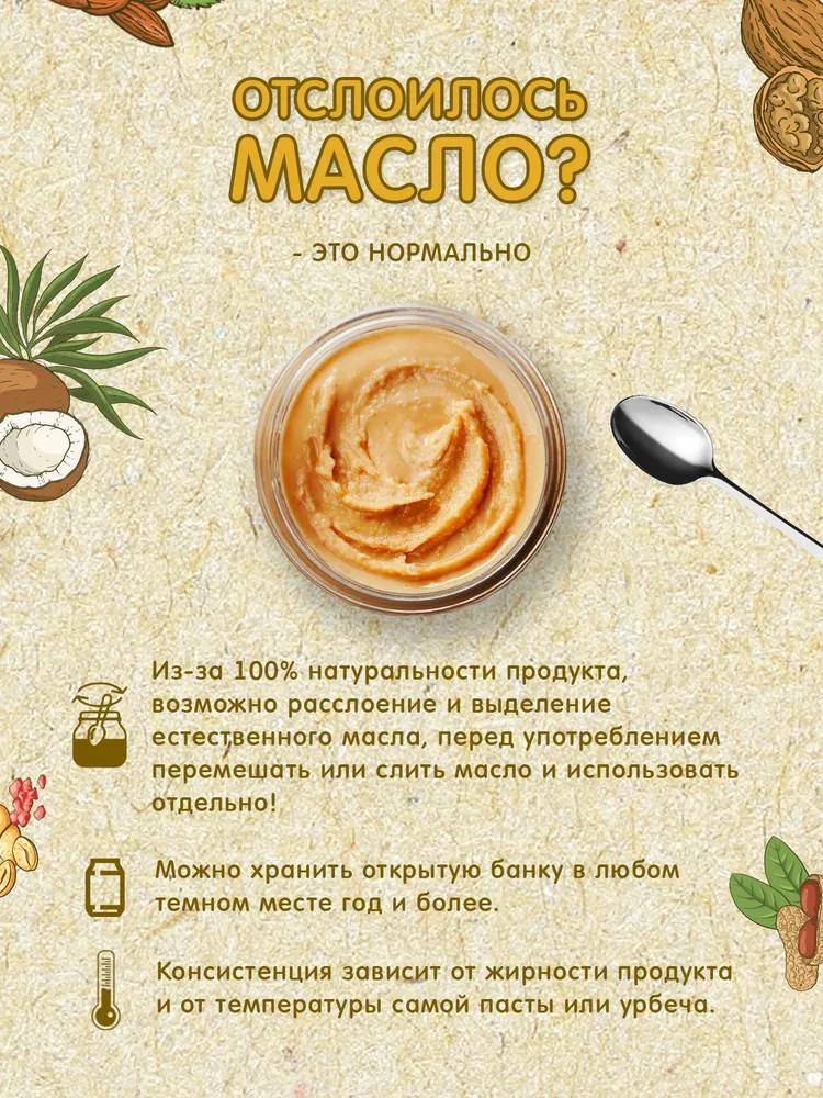 Насыщенный ореховый вкус, не сладкий, с кусочками арахиса. Расслоился, но быстро смешался обратно и текстура стала очень нежной и кремовой. Очень сытный и вкусный урбеч!