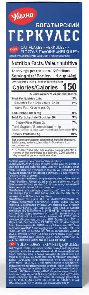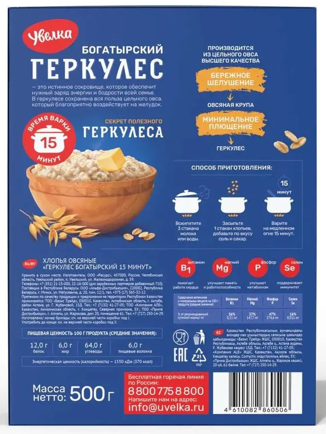 Увелка Хлопья овсяные «Геркулес Богатырский 15 минут»В данный момент этот товар отсутствует в продаже. Возможно, у нас найдется аналогичный или похожий товар здесь. Богатырский геркулес — это истинное сокровище, которое обеспечит нужный заряд энергии и бодрости всей семье. В геркулесе сохранена вся польза цельного овса, который благоприятно воздействует на желудок. Время варки — 15 минут. |