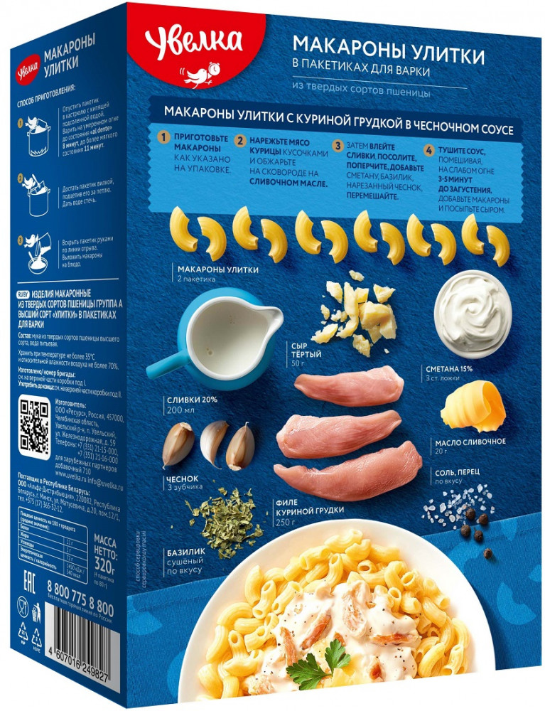 Увелка Макароны улиткиВ данный момент этот товар отсутствует в продаже. Возможно, у нас найдется аналогичный или похожий товар здесь. Макароны — один из любимых гарниров, который любят как взрослые, так и дети. Одна из самых популярных форм макаронных изделий — улитки. Макароны — необычные, они варятся прямо в пакете, при этом не слипаются и не требуют вашего внимания. Главное — засечь время варки! |