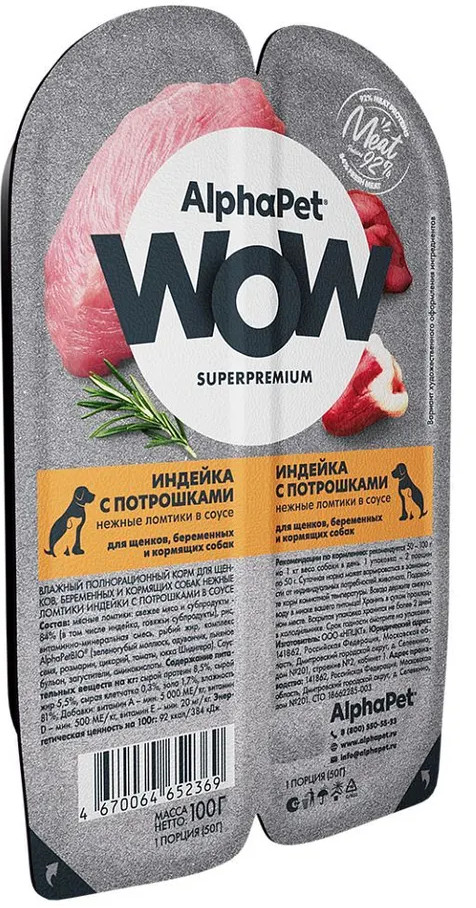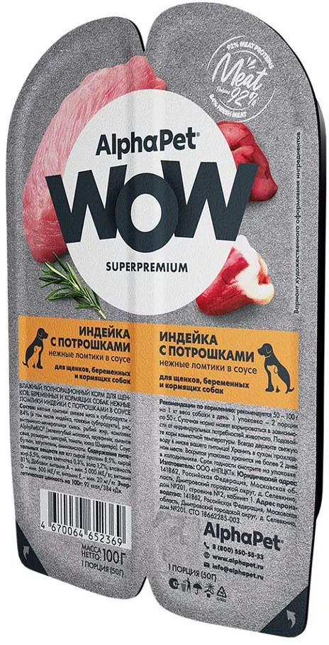 AlphaPet Корм для собак «Индейка с потрошками»