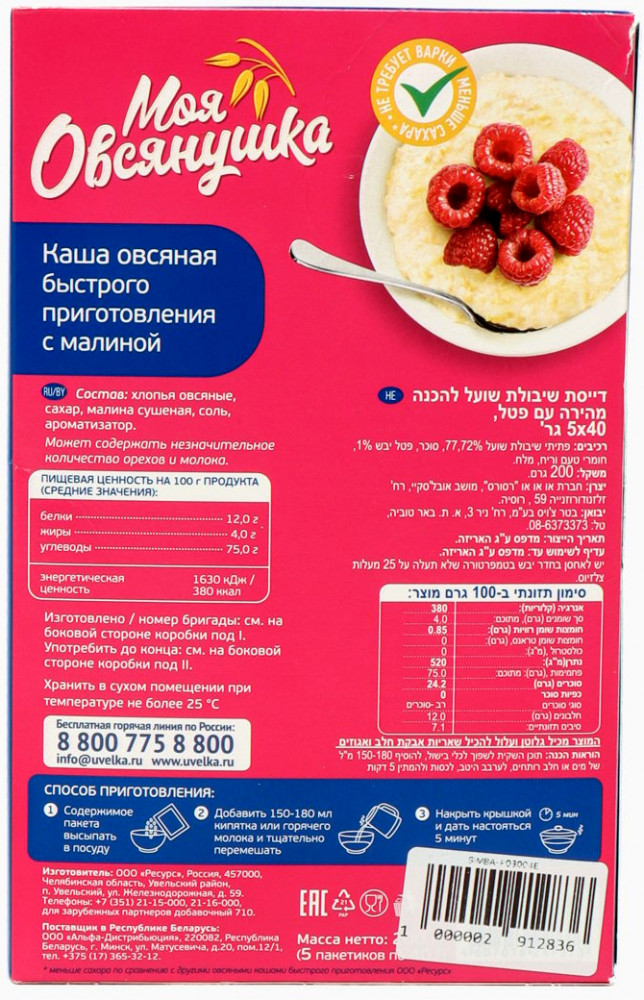 Из пяти пакетиков с крупой сушеные ягоды малины были только в 3-х пакетиках. А в двух ягоды не было вообще, что очень удивило, т к каша заявлена с малиной. Вообщем со стороны производителя видимо это фортуна: достанется вам каша с ягодой или без. 😊